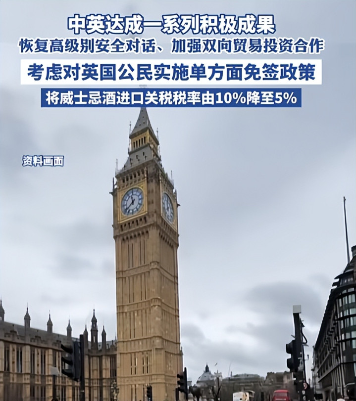 就在前一天,斯塔默刚抵京,中英双方就迅速达成多项合作协议,中方更是诚意满满地将英国威士忌的进口关税从10%下调至5%。