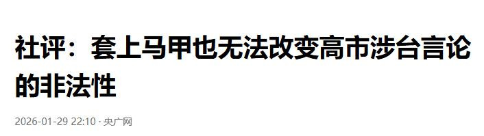 社评:套上马甲也无法改变高市涉台言论的非法性——央广网